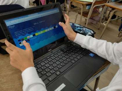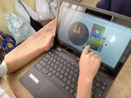 Chromebookを使って、プログラミングソフトのビスケットで学習しています。