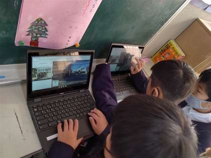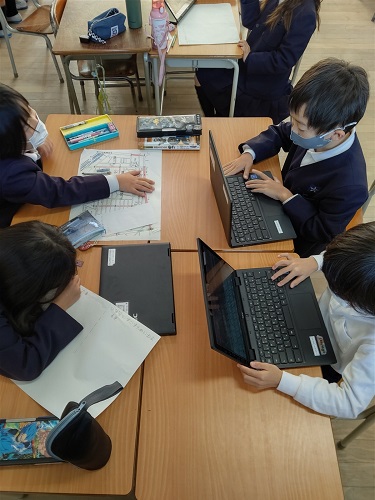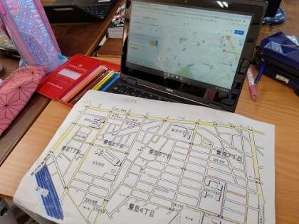 班で協力して、豊里安全マップを作っています。「まちでふだんから安全に注意しなければならないところを見つけよう。」をめあてに、Chromebookも使って、調べています。