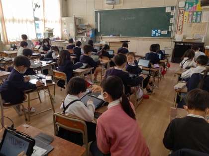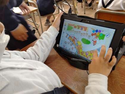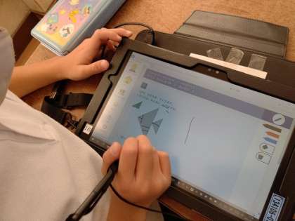 タブレット端末を使って、デジタルドリルの学習をしています。