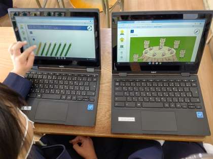 Chromebookを使って、デジタルドリルの学習やNHK for Schoolの映像を見ています。