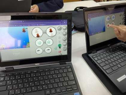 Chromebookを使って、プログラミングソフトのビスケットで学習しています。