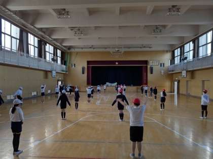 体育館と運動場でポートボールをしています。