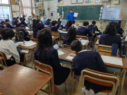 家庭科で、「食べて元気に」の栄養素の働きなどを学習をしています。