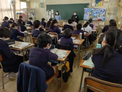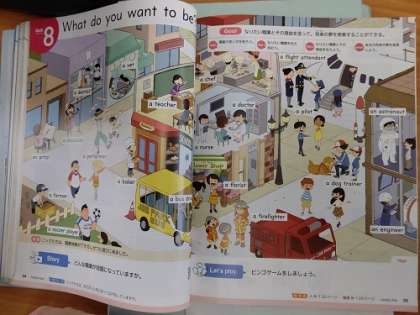 C−NETの先生と、「What do you want to be?」のなりたい職業と将来の夢を発表しています。