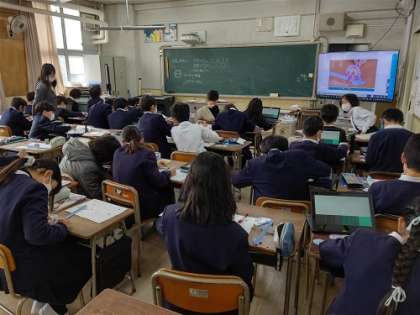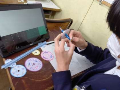 算数の習熟度別少人数授業をしています。「円周測定マシーン」を使って、円周をmm単位まではかり、円周と直径の関係を調べています。