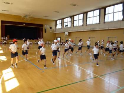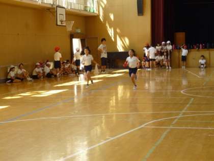 20m(体育館の端から端)を一定時間内に走ることの繰り返しです。