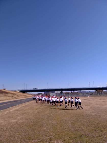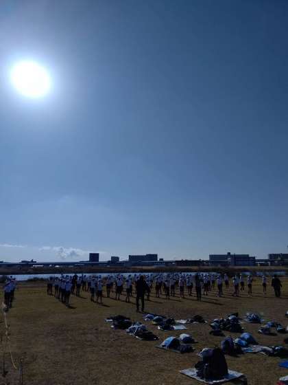 5年生はスタート地点へ移動です。6年生は準備体操をしています。
