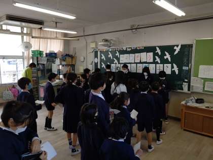 5時間目にたてわり班教室に全校児童が分かれて、「卒業をお祝いする会」を行いました。