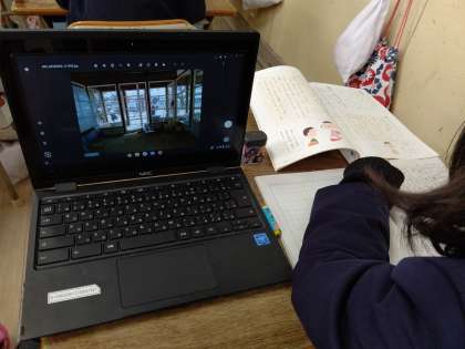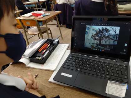Chromebookを使って、中庭で撮影した所の紹介を書いています。