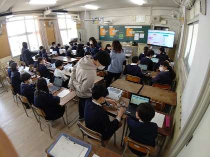 6時間目に6年の理科の研究授業を行いました。「電気を無駄なく使うための工夫について、予想した条件や動作の組み合わせをもとに、プログラムを組むことができる。」ことを目標に学習しました。