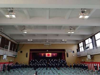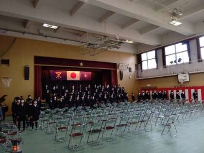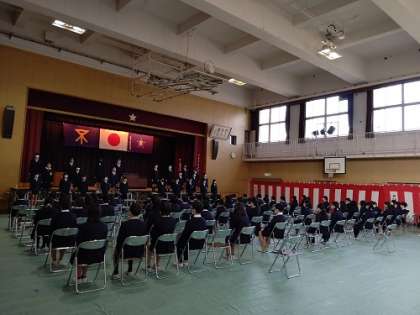 卒業式の練習をしています。