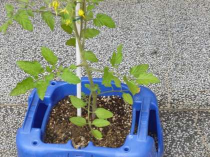 苗も大きくなり、小さな黄色い花を咲かせています。