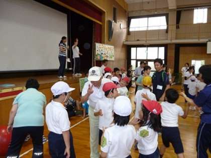 担当校長先生のお話のあと、紙芝居やゲーム、サーキット遊びなどで楽しく交流を進めることができました。