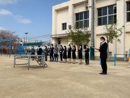 初めに学校長より豊里小学校に新しく着任された10名の教職員を紹介しました。