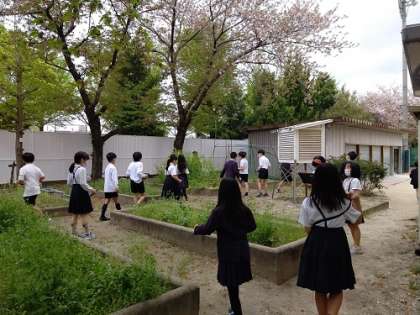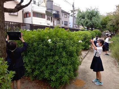 理科で、chromebookを使って、校庭の植物などを撮影しています。