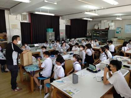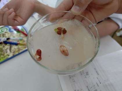 理科で、インゲンマメの「温度と発芽」「空気と発芽」の学習をしています。
