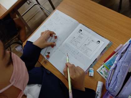 算数で、「問題カード作りをしましょう。」の学習をしています。