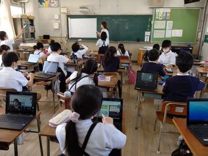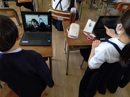 chromebookを使って、「お気に入りの場所において写真をとる。」の準備をして、校庭に写真をとりに出ました。