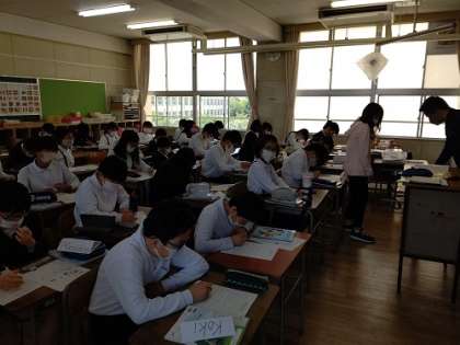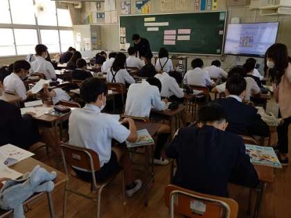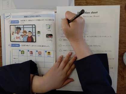 C−NET先生と「得意なことを伝え合おう。」の学習をしています。