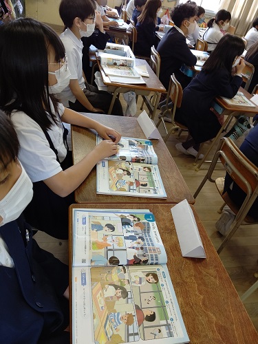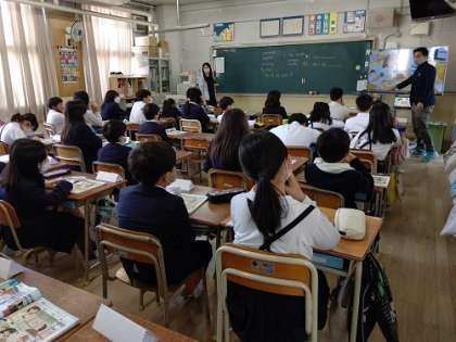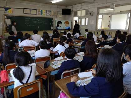 C−NET先生と「名前や好きなものを言って、自己紹介をすることができる。」の学習をしています。