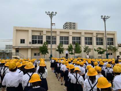 まず、校長先生から今週があいさつ強調週間ということで、あいさつについてお話がありました。次に、「最近転ぶ人が多いので気を付けましょう。」とお話がありました。