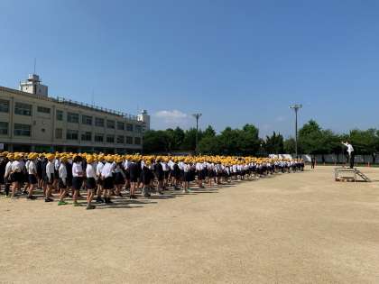 次に、児童会からあいさつ強調週間の報告と豊里カーニバルのお知らせがありました。代表の児童は、みんなの前でしっかりとお話してくれました。