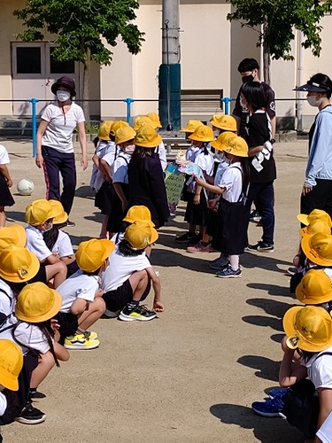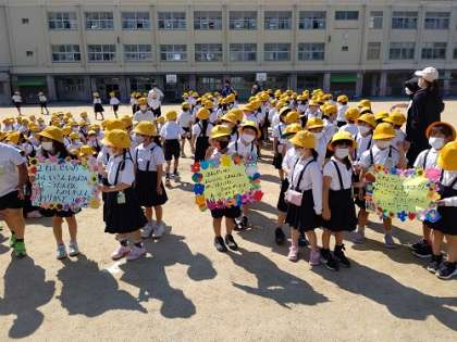 1年生から2年生へ、「おにいさん おねえさん がっこうたんけん たのしかったよ ありがとう」とお礼を伝えました。