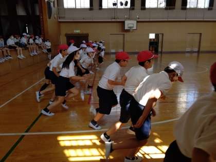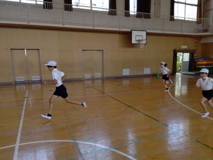 スポーツテストのシャトルランをしています。