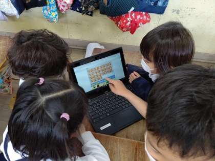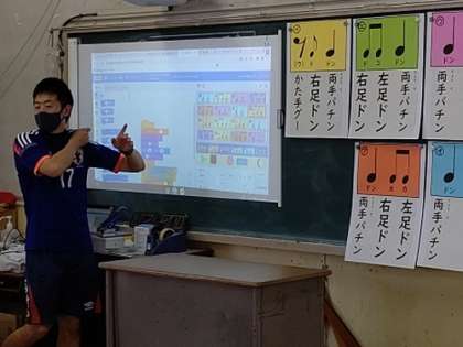 chromebookを使って、SCRATCHのソフトでリズムを作っています。