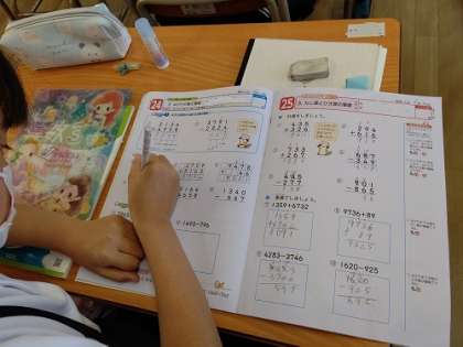 算数で、「4けたの数の計算」の学習をしています。