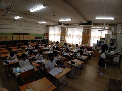 算数で、「4けたの数の計算」の学習をしています。