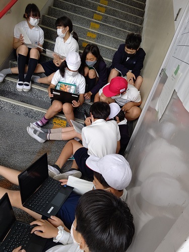 班で協力して、防災に関することをまとめて、chromebookを使って、プレゼンテーションを作っています。