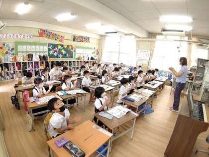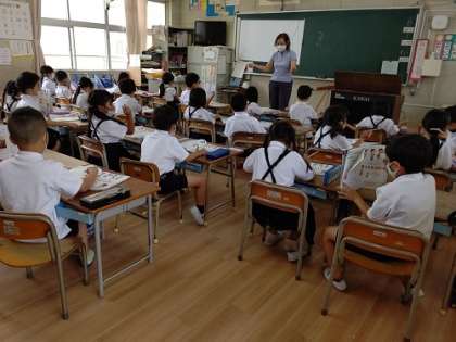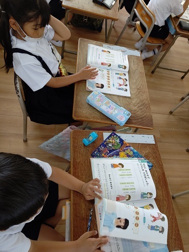 音楽で、「うたにあわせてリズムをうちましょう。」の学習をしています。