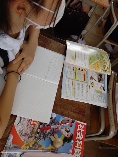社会で、「板付遺跡と米づくり」の学習をしています。