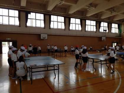 写真、卓球、バドミントンのクラブ活動の様子です。