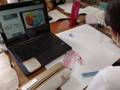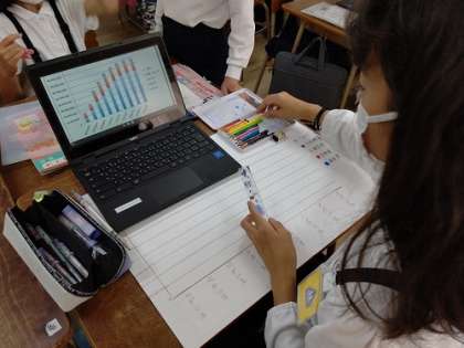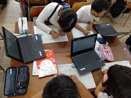 chromebookを使って、「環境問題について報告しよう」のプレゼンを作っています。