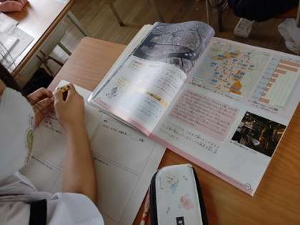 社会で、「大阪市の工場の多いところ」の学習をしています。