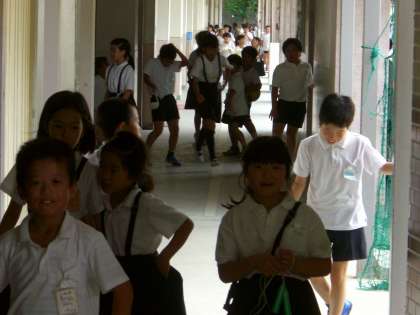 運動場に飛び出す児童と廊下を横切る児童がぶつかりそうになる場面にもよく遭遇します。