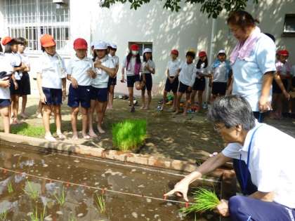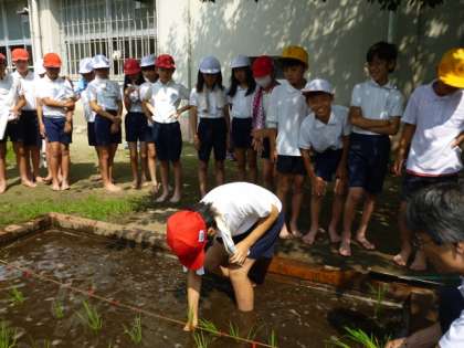 はじめての土の感触? 〜田植えが終わりました〜