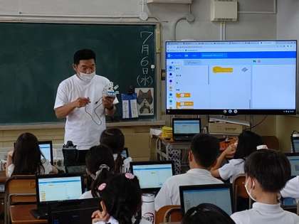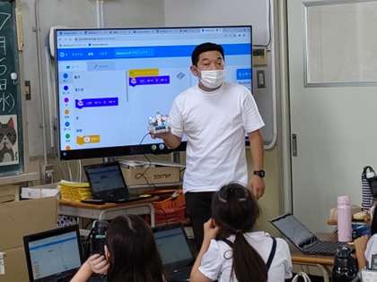 chromebookを使って、スタディーノ(スクラッチベースのソウトウェア)で、プログラミングします。