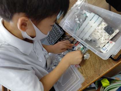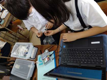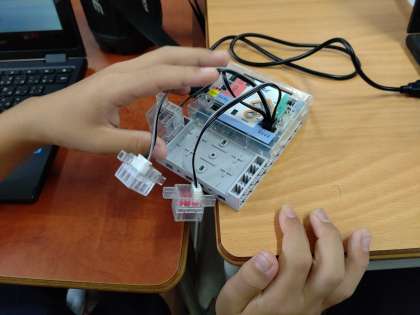 アーテックロボに、赤・青・緑のLEDの接続を行っています。