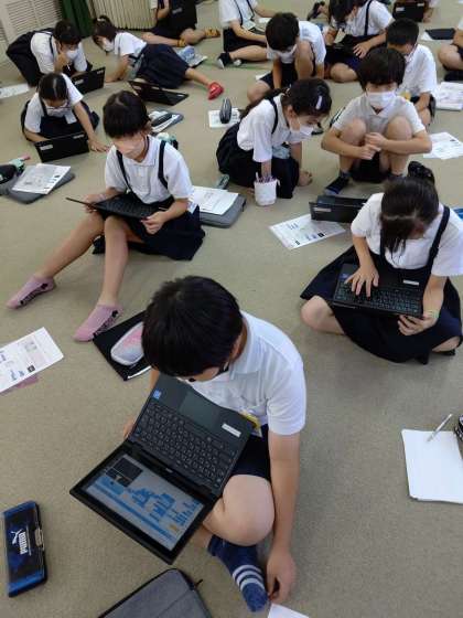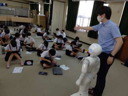 Chromebookで、ロボブロックスというソフトを使い、「頭・右手・左手・足をさわったら、話をして、動くようにする」をPepperにしてもらうための、プログラムを考えています。