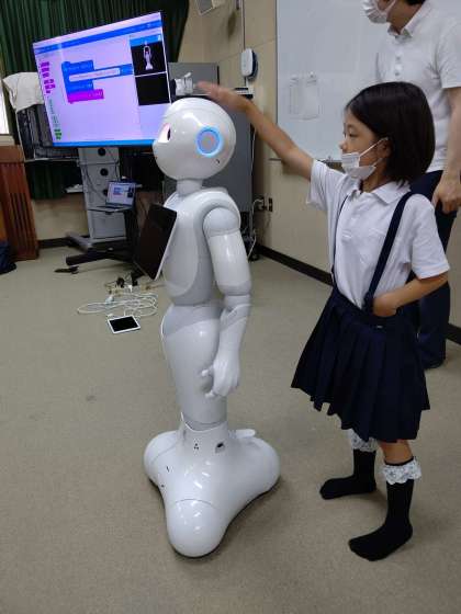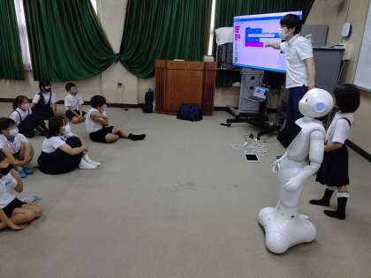 Pepperが、「とよさと小学校のみなさん、ありがとうございました。」と最後の挨拶をしています。
