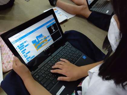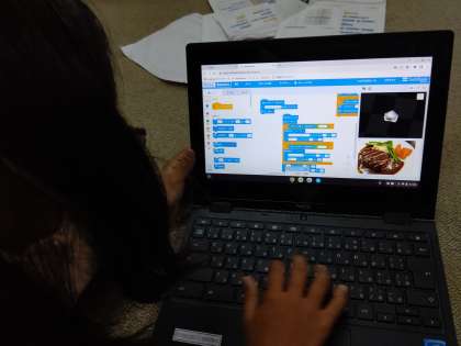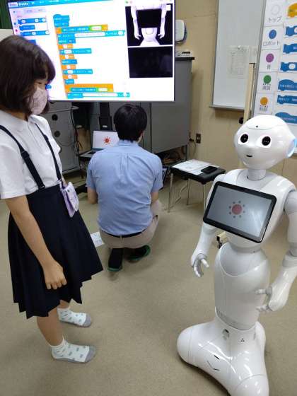 Chromebookで、ロボブロックスというソフトを使い、「Pepperのディスプレイに画像を出す」プログラムを考えています。