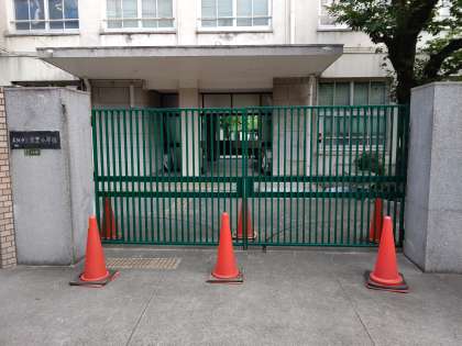南側の門の学校の表札は、旧字の「學」が使われています。
