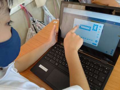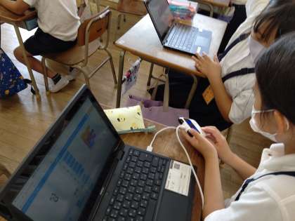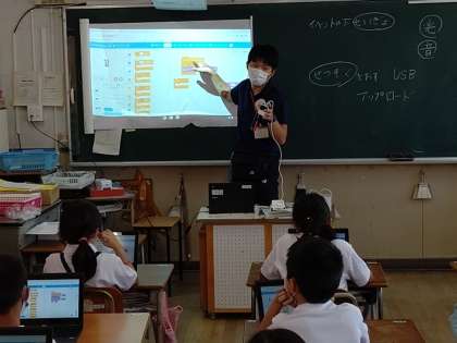 mblockは、様々な指示・命令・条件などのブロックを組み合わせてプログラムが作れます。順次処理の次に繰り返し処理のプログラムを学習しています。