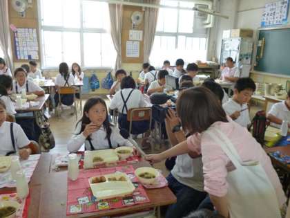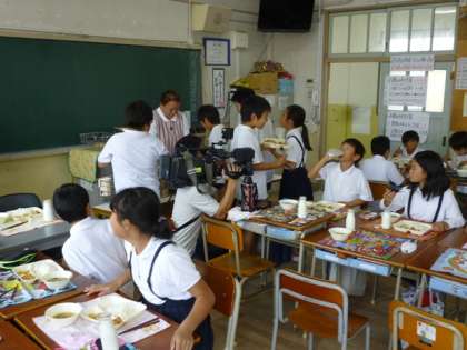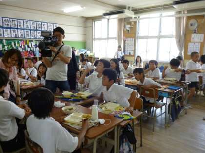 クラスでは、給食の様子を撮影し、何人もの児童に給食や牛乳についてのインタビュー。