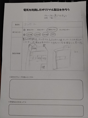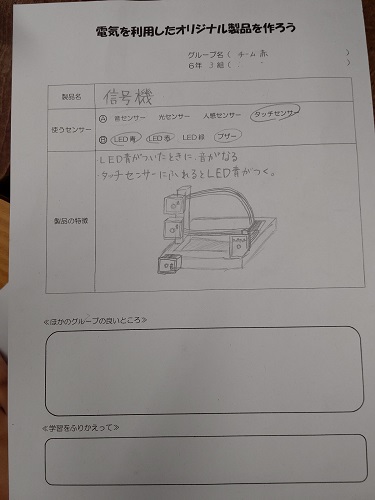 「オリジナル製品を考えよう」のワークシートを使い、班で考えています。