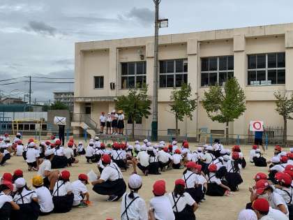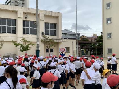 みんなで〇×クイズをしました。学校についてのクイズを聞いて、答えが〇か×かを考えてから、〇と×の場所に移動しました。楽しそうに答えを考えて移動していました。