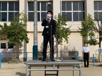 校長先生から【暑い日が続きますので、こまめに水分補給をしましょう。外では帽子をかぶりましょう。】【来週は19日(月)敬老の日、23日(金)秋分の日と休みが2日あります。】とお話がありました。